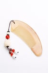 "Smooth as jade, warm as amber. Hand-polished from a single piece of natural sheep horn to glide effortlessly through your hair. Featuring a handcrafted lotus charm for a touch of serenity."